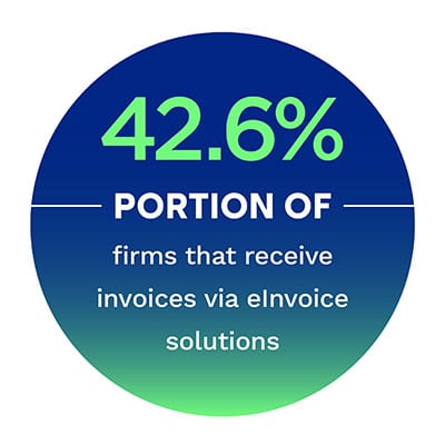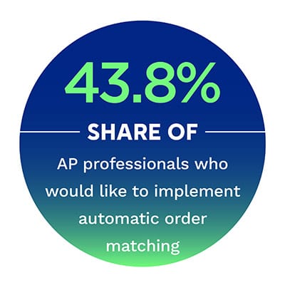 It follows that these professionals would seek to adopt digital AP solutions like these — in fact, 28 percent said they would like their firms to adopt ePayables in the future. Other innovations they would like to implement include automated order matching (cited by 43.8 percent), eInvoicing (56.9 percent) and AI systems (24.6 percent).