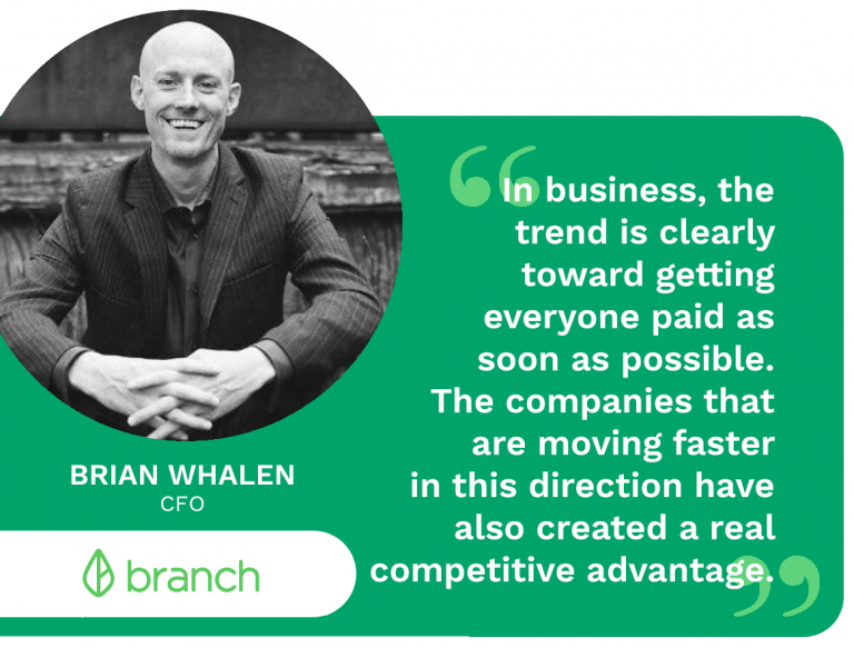 “In business, the trend is clearly toward getting everyone paid as soon as possible,” Whalen said. “The companies that are moving faster in this direction have also created a real competitive advantage. Once upon a time, they might have said they can build it themselves, but they’re reconsidering that and saying, ‘I know what I’m good at. Let’s go look for a partner who can do the digitization of the payments, because that’s their expertise.’”