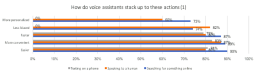 As for what consumers are doing with the help of their smart-AI assistants? Currently, people are most likely to ask questions and get them answered, followed by using their voice AI to help them stream music. When asked why they like using voice AI, consumers most commonly answer that a voice assistant makes it easier, more convenient and faster to search for something online. They also tend to rate the experience more highly than talking to a human being or having a text-based conversation.
