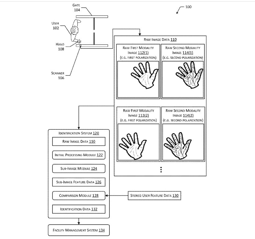 That news was followed by a December patent filing that described “a scanner device [that] is used to obtain raw images of a user’s palm that is within a field of view of the scanner … The first set of images depicts external characteristics, such as lines and creases in the user’s palm, while the second set of images depicts internal anatomical structures, such as veins, bones, soft tissue, or other structures beneath the epidermis of the skin.”