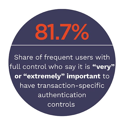 - Only 39.9 percent of respondents use apps that enable them to utilize authentication requirements for specific transaction types