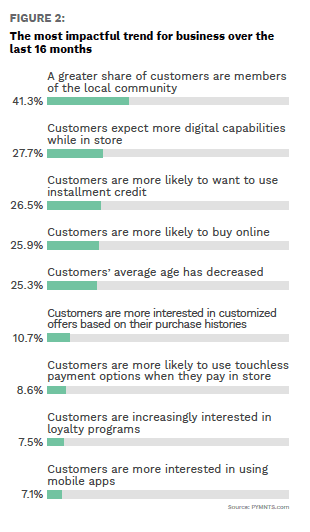 One of the most intriguing takeaways from PYMNTS’ latest research on business trends also comes from the BNPL space. Businesses believe that BNPL demand is still limited, but the method is nevertheless having a big impact on their decisions. Less than one-quarter of surveyed businesses felt that their customers had come to expect BNPL offerings during the past 15 months, yet BNPL came in third on their list of the most impactful trends in business — nearly tied for second with customers’ expectations for more digital capabilities within their stores.