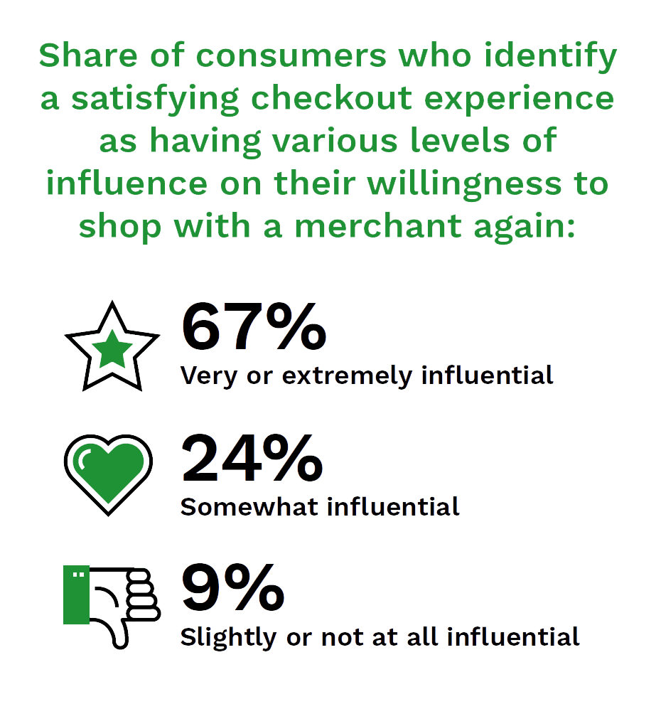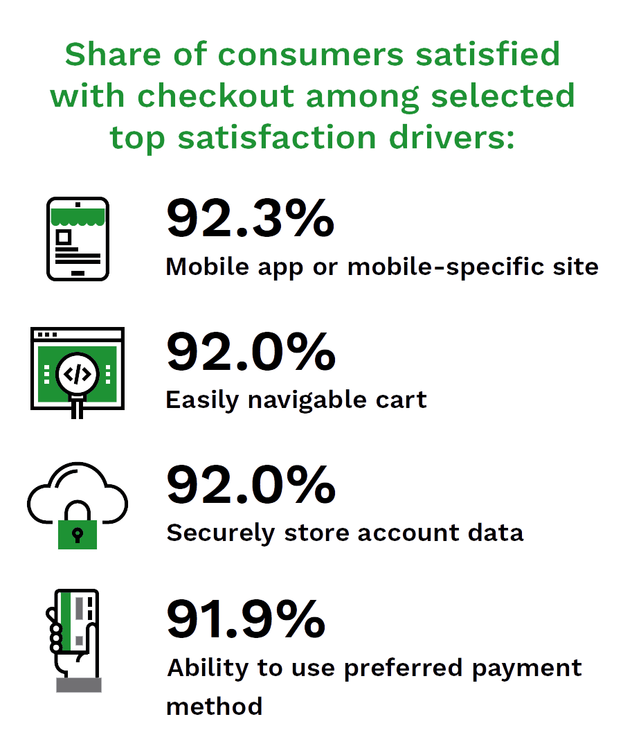 Certain checkout features not only are essential to customer satisfaction but also can help create a streamlined, less friction-filled checkout journey. PYMNTS data demonstrates that among the online checkout features that drive the highest customer satisfaction are the availability of a mobile app, an easily navigable cart, the ability to securely store account data and the ability to use a preferred payment method.
