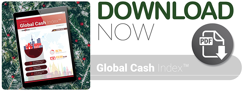 The PYMNTS.com Global Cash Index™, a Cardtronics collaboration, focuses on the use of cash as a payment method that plays an equal role with cards, checks, direct debit and other methods of settling up between consumers and businesses. Unlike most reported estimates of cash, our proprietary data analysis focuses on the use of cash for making payments rather than hoarding.