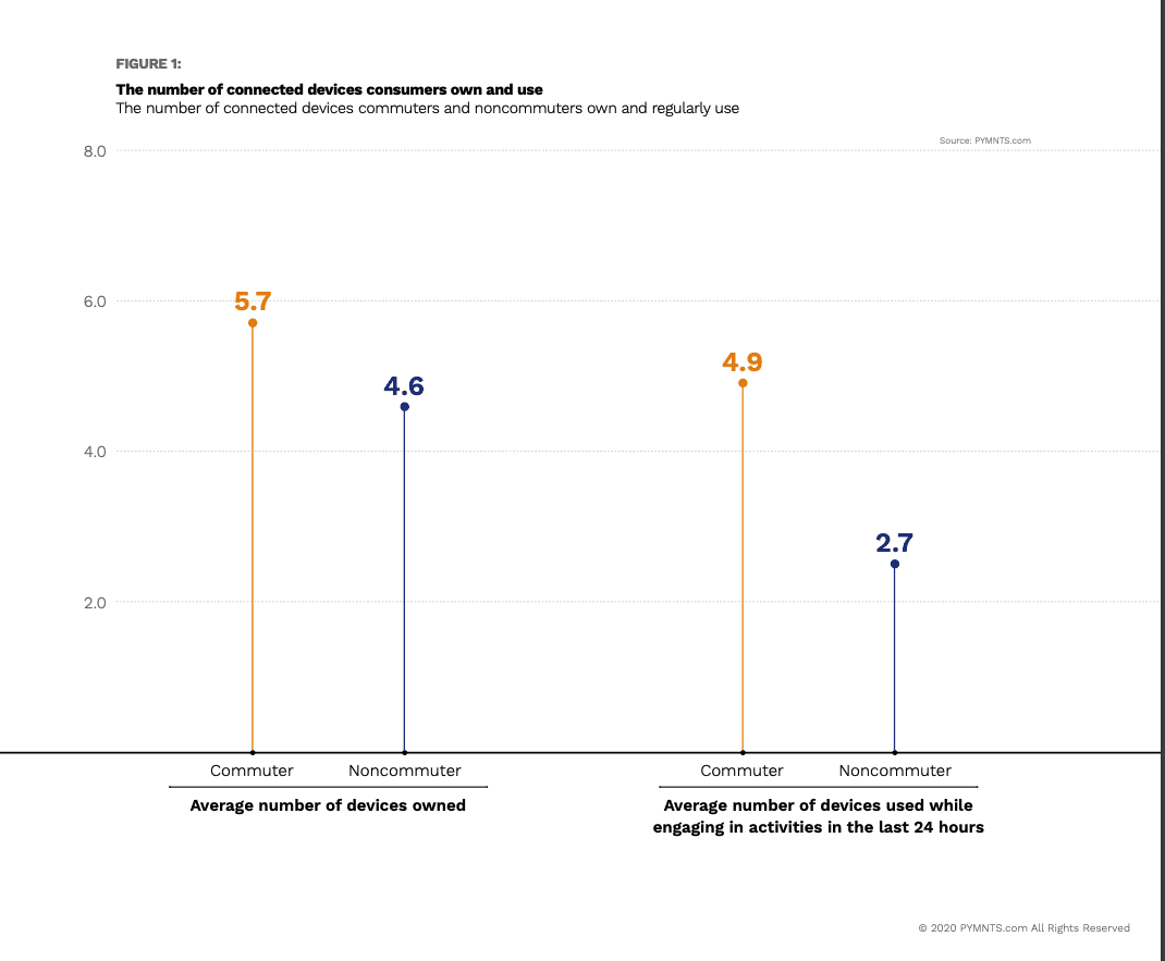 In fact, the more people commute, the more connected they want to be. In the How We Will Pay survey of more than 9,500 consumers, PYMNTS revealed a growing gap between commuters and noncommuters in the manner and number of connected devices they own.