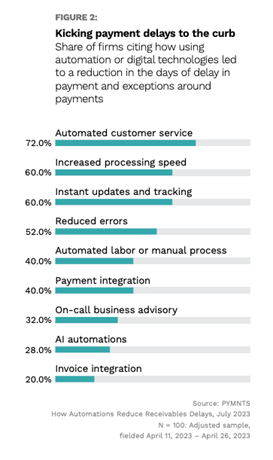 The survey revealed that 83% of CFOs experienced some delay in the last quarter, with payments identified as the primary source. Automation is credited with reducing AR days of delay, providing instant tracking, reducing errors and automating customer service.