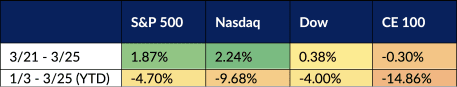 CE100 Performance Vs. Broader Indices (Week ended 3/25 and Year to Date)