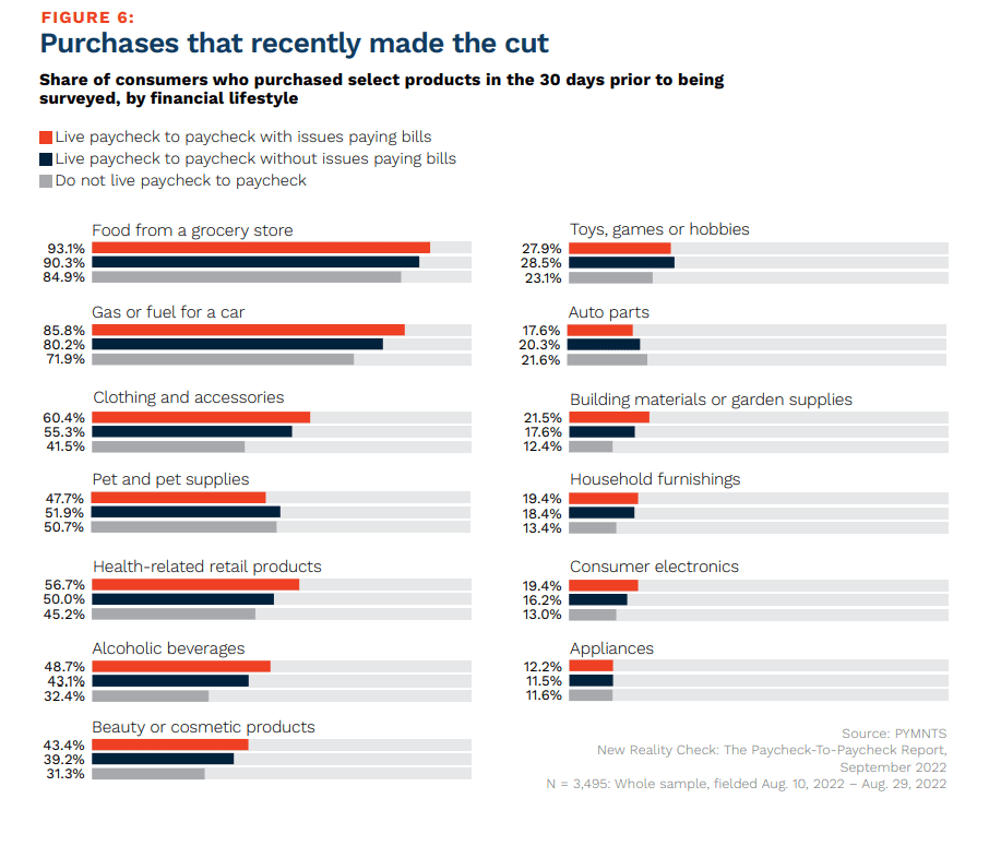 These findings and this week’s earnings reports bear out PYMNTS’ long-running research on consumers’ finances and spending habits. Shoppers’ shift from discretionary purchases has been recently cataloged in the December PYMNTS collaboration with Lending Club, “New Reality Check: The Paycheck-to-Paycheck Report 2022 Year in Review.”