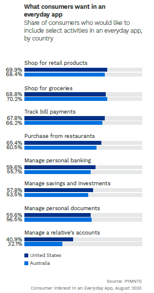 survey conducted by PYMNTS Intelligence and PayPal reveals that millions of consumers in the United States and Australia are highly interested in using an everyday app. In fact, nearly 100 million individuals in the two countries are interested in using an all-in-one finance and shopping app.