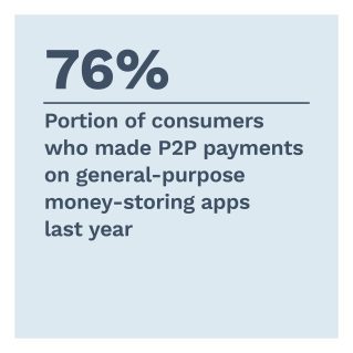 Nearly 60% of consumers now use money-storing apps, which they use for everything from peer-to-peer (P2P) transfers and retail purchases. Capitalizing on this growing user base requires merchants and banks to understand which apps consumers prefer and the features that make them sticky.