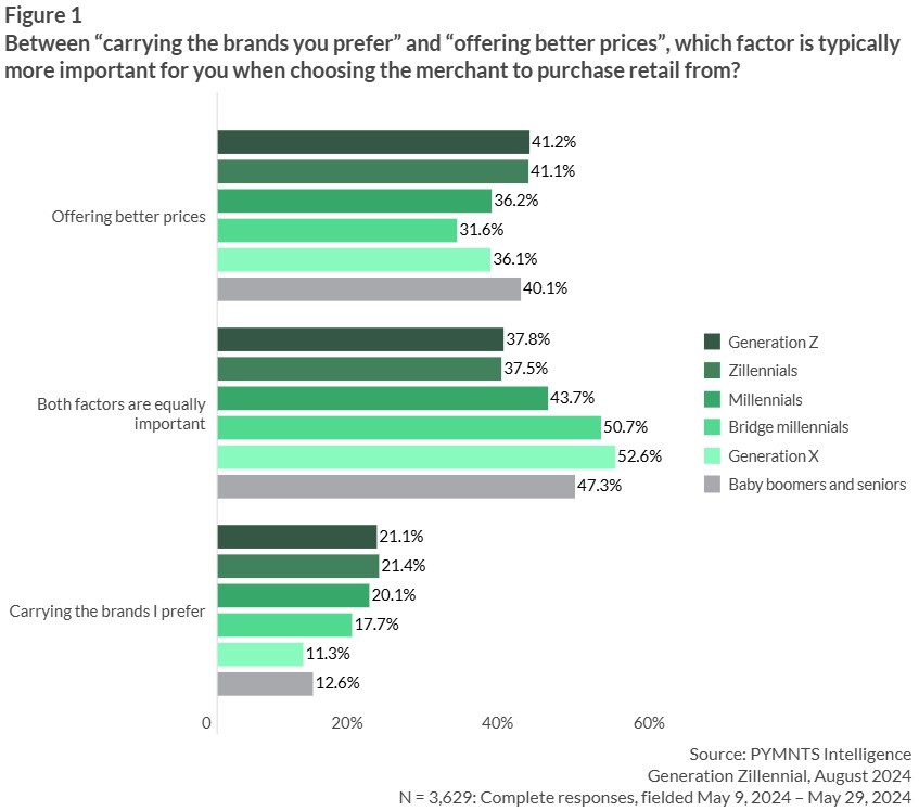 According to a PYMNTS Intelligence report, “Zillennials: What Drives Their Shopping Habits?,” brand loyalty is not just a trend, but a defining feature of zillennials’ shopping habits. Consider 21% of this group prioritizes finding their preferred brands over securing the best deal. Compare this to the overall consumer population, where only 16% share the same sentiment. Zillennials feel a deeper affinity for brands they trust and their connections extend beyond product satisfaction to encompass values like sustainability and social responsibility.