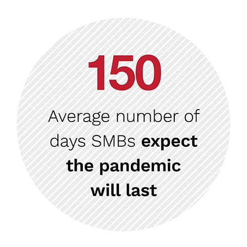 This is not true for SMBs in all industries, however: the share of SMBs that have applied for loans is highest in the technology industry, for example, where business owners believe government funding can make a major difference. Our research shows that 54.8 percent of technology SMB owners have applied for SBA loans. This makes sense, as the average technology SMB owner believes government aid can keep them open for 95 days and that the pandemic will last just 99 days. In other words, these business leaders believe additional funding