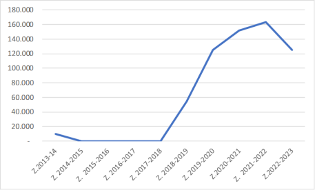 Brazil is the world’s second-largest ethanol producer, and over the last four years its ethanol production has sustained levels of more than 30 million cubic meters per year. In 2022 Brazil exported 2.439.900 m3 of ethanol.11 Sugarcane is the main input in its production, as 89.4% of ethanol is made from sugarcane. Brazil has now been assigning sugar stocks to its ethanol production for several years,12 which has led to a more diverse energy mix in the country, with greater shares accounted for by sugarcane. (Figure 2).