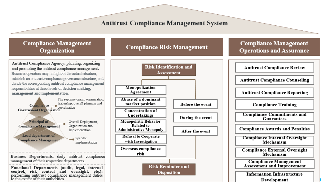 - Whether the undertaking’s antitrust compliance management system contains a systematic management system, an independent compliance management organization, a commensurate compliance risk management mechanism, and a stable compliance guarantee mechanism, etc.;