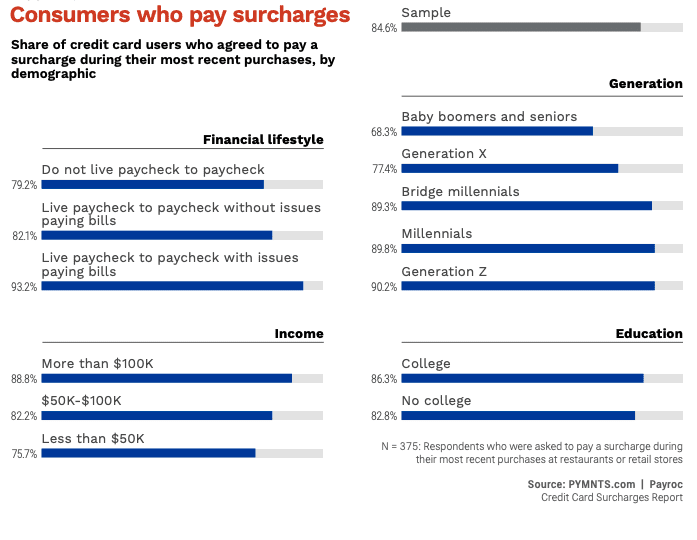 - Eighty-five percent of the cardholders who faced surcharges agreed to pay them.