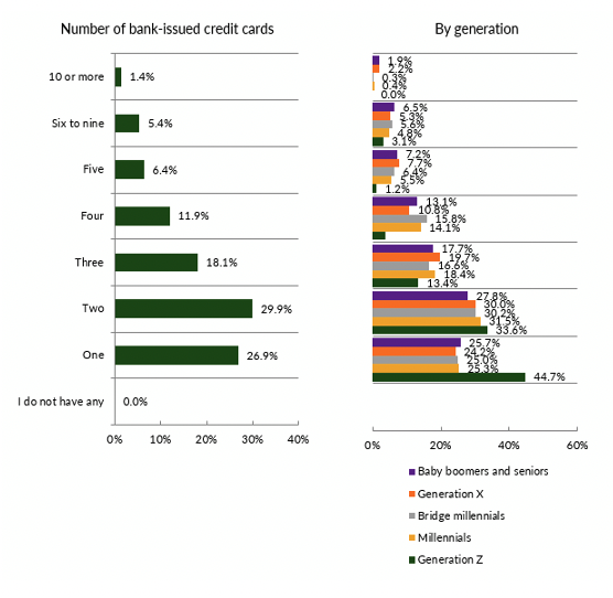 Reasons behind this limited number of cards carried by Gen Z may vary. They can include a means of budget management or a low credit score being a barrier to accessing financial products.