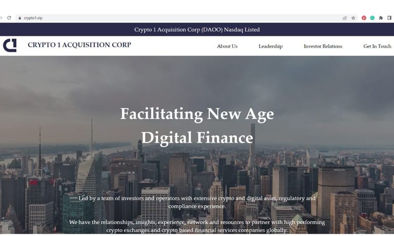 “The company anticipates that the company cannot consummate an initial business combination within the time period required by its amended and restated memorandum and articles of association,” Crypto 1 Acquisition said in the release. “Accordingly, the company intends to dissolve and liquidate in accordance with the provisions of its amended and restated memorandum and articles of association.”
