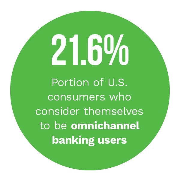 they accelerate their use of online and mobile technologies. PYMNTS research found that 21.6 percent of consumers consider themselves omnichannel banking users, meaning they use both physical and digital channels to conduct their banking activities.