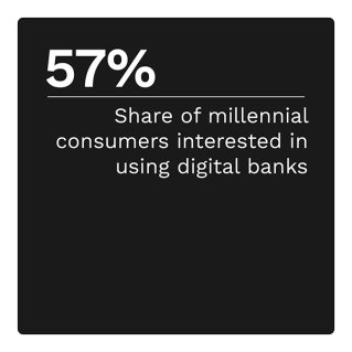 Digital banks are gaining market share, especially among small business owners, freelancers and millennial customers. Increased security and the latest innovative features appeal to many favoring digital banking, but many, particularly older customers, still make good use of FIs’ physical locations.