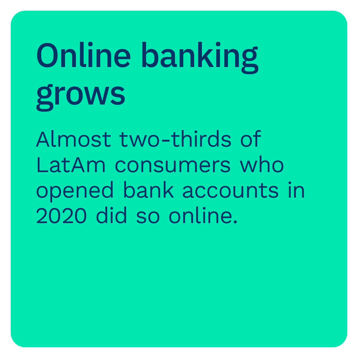 Both legacy FIs and FinTechs have a rising opportunity to engage and retain consumers’ loyalty in the region. One recent study found 40% of consumers opened bank accounts in 2020, with 60% stating they did so online. This growth in online banking sign-ups occurred at a time when many brick-and-mortar banks and businesses were shut down, but consumers have continued to gravitate toward digital channels even as public health and safety concerns eased. Keeping track of how consumers’ preferences and banking wants are continuing to shift and how they can accommodate them is therefore critical for both legacy and emerging FIs.