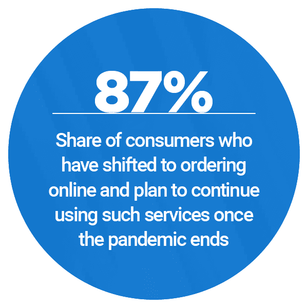 th 61 percent saying that the ability to pay digitally is a key factor in influencing their restaurant choice. The high demand for such offerings is unlikely to abate post-pandemic, either, with 87 percent of consumers who had shifted to ordering online from restaurants during the public health crisis saying they expect to continue doing so once the pandemic ends.
