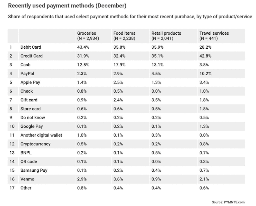 The study found that, last month, restaurant customers were twice as likely as grocery shoppers to pay for their purchases using Google Pay or Samsung Pay, and they were 79% more likely to use Apple Pay. Consumers were also significantly more likely to use digital payment options such as PayPal or Venmo at restaurants than at grocery stores.