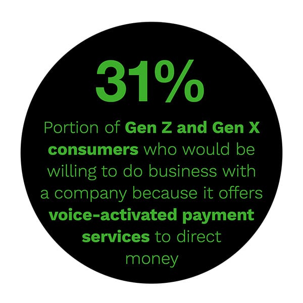 The findings also show that the use of new technologies could play a crucial role in personalizing the payments experience for consumers, especially younger tech-savvy generations like bridge millennials and millennials. More than 20 percent of consumers say they would be more likely to keep doing business with payors who allowed them to use voice commands to direct their money as they pleased, for example, while approximately 37 percent of bridge millennials and 36 percent of millennials say the same.