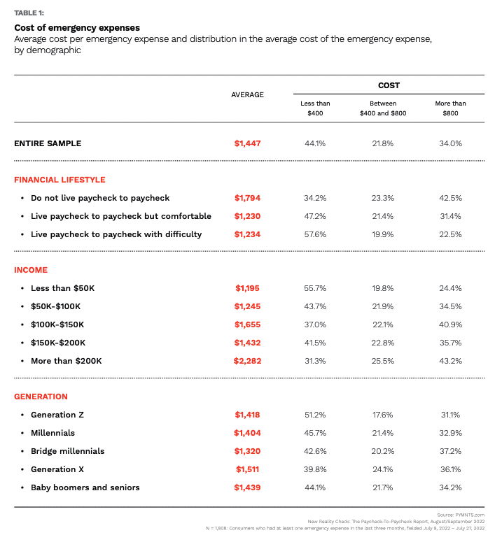 “According to PYMNTS’ research, 56% of emergency expenses are far more than $400,” the study found. “In fact, emergency expenses average approximately $1,400, with high-income earners and consumers not living paycheck to paycheck reporting significantly higher expenses on average.”