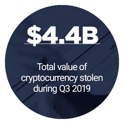 Cryptocurrency is a popular target for cyberattacks. A recent study found that hackers stole $4.4 billion of cryptocurrency during Q3 2019, a year-over-year increase of 159%. The increase is due to a relatively small number of high-value schemes, including a $3 billion theft via Ponzi scheme in Asia, and a series of heists perpetrated by North Korea-backed cybercriminals. Chinese authorities arrested six members of the Ponzi scheme over the summer, and the U.S. Department of Justice arrested an alleged accomplice of North Korea’s cryptocurrency racket.