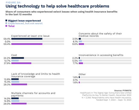 Additionally, over half (55%) of those surveyed “who experience issues using healthcare services or benefits are very or extremely interested in a unified digital healthcare platform, suggesting that most consumers may believe that a consolidated platform could eliminate some barriers to accessing health insurance and healthcare services.”