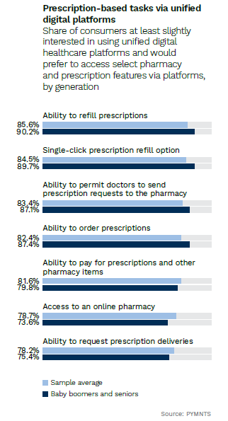 This includes the 90% of baby boomers and seniors who said they would prefer to refill prescriptions through digital platforms, and the 87% who said they would prefer to use the platforms to permit doctors to send prescriptions.
