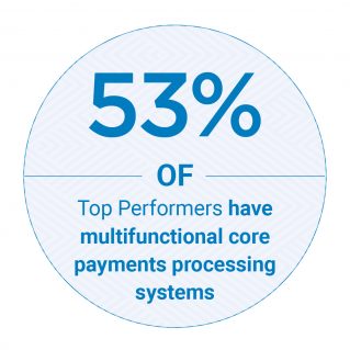 - 53 percent of Top Performers have core payment processing systems that are multifunctional