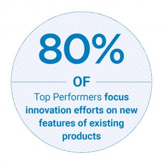 - 80 percent of Top Performers focus innovation efforts on making new features for existing products