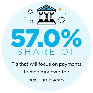 NTS’ research, 57 percent of all FIs will focus on this area over the next three years, making it the highest item on an agenda that also includes user experience, consumer engagement, and fraud and security. It is an especially keen interest for the top performers in our Index: more than 73 percent of them will invest in payment technology, a 22 percent increase over the past three years.