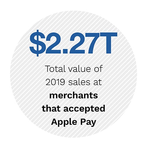 These trendlines are all the more remarkable considering the technical progress that has been made since the early days of mobile wallets. Apple Pay now works on 93 percent of all iPhones in the United States, up from just 39 percent in 2015, and it can be accepted at contactless terminals by merchants that collectively generate nearly two-thirds of all retail sales. If Apple Pay and Walmart Pay were used to pay for all the purchases where possible in 2019, the annual sales volume would have totaled close to $3 trillion.
