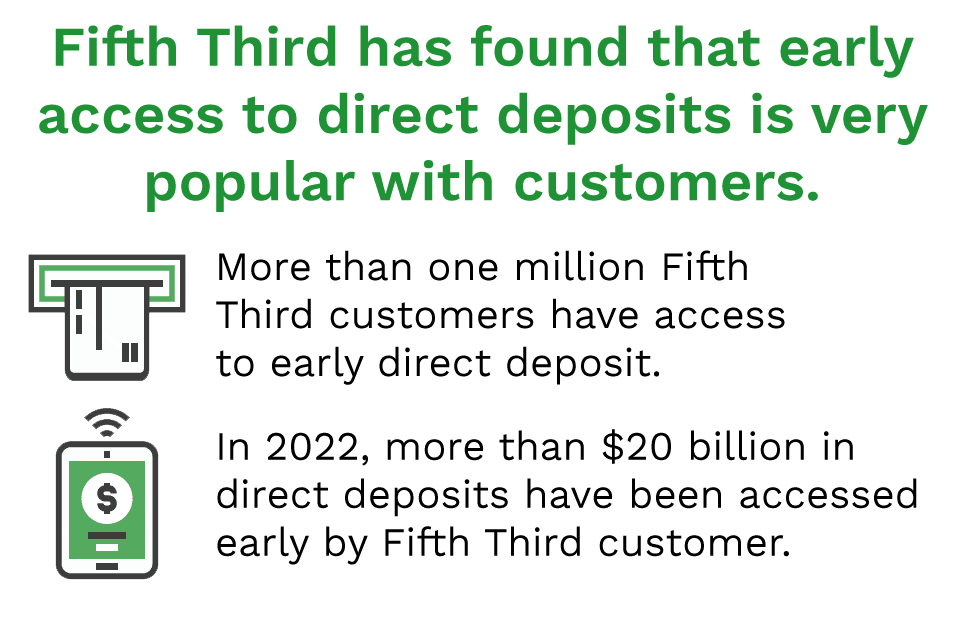Since Fifth Third already had the groundwork for faster processing of automated clearing house payments, the bank was able to expand the offering to cover a wide range of direct deposits, even government benefits.