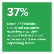 Yet FinTechs were more likely to report that consumers were more concerned about customer experience when depositing funds, cited by 37% of the CFOs surveyed, and more about limited payment options with 32% of CFOs citing this as their most-often experienced issue when moving funds out.