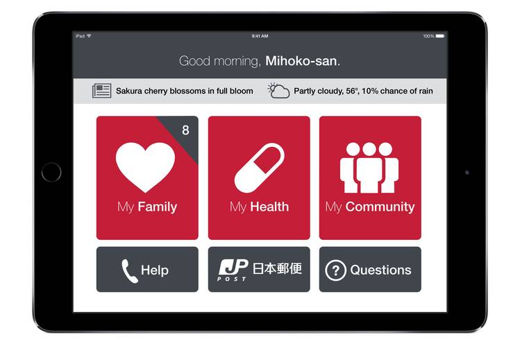 The rollout will start later this year. It will begin by extending an existing Japan Post service called Watch Over, which offers in-person check-ins for people living alone, to include services through the iPad. A simplified interface will include large buttons that link seniors to health care details, access to friends and relatives, and a button to call for emergency help.