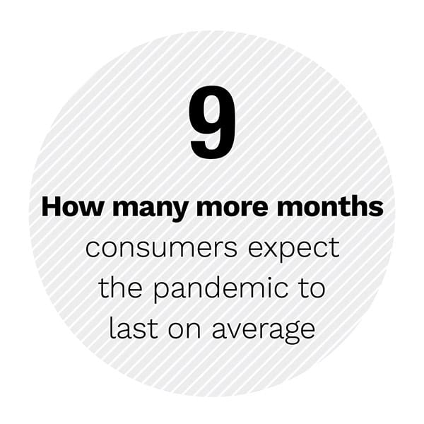 Not only are consumers wary of leaving their homes to reengage in brick-and-mortar commerce, but they also show signs of planning to shop from home long into the future. The average consumers do not expect the pandemic to end until February 2021, and 43.3 percent of the adult population does not expect their lives to return to the way they were for at least another year. Ten percent do not believe their lives will ever go back