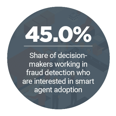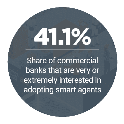 This ability to analyze and learn from an experience makes smart agents highly effective tools in the financial services space. It’s no wonder that 64 percent of all FIs said they would be interested in using them.