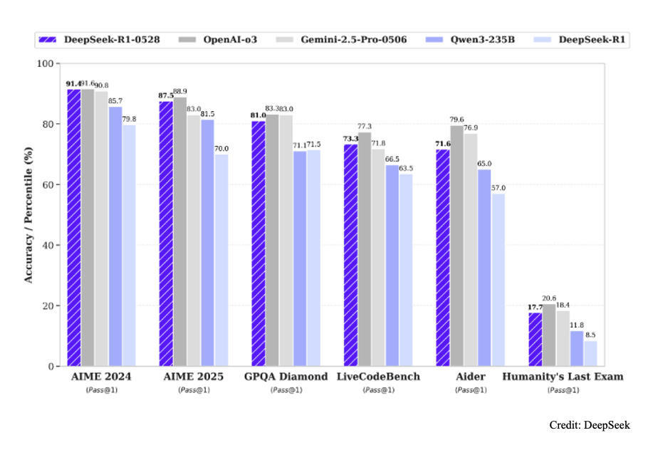 DeepSeek boosted the model by using more computation and adding mechanisms to optimize its algorithms, the post said. As a result, its overall performance comes close to OpenAI’s top model, o3, and Google’s best model, Gemini 2.5 Pro.