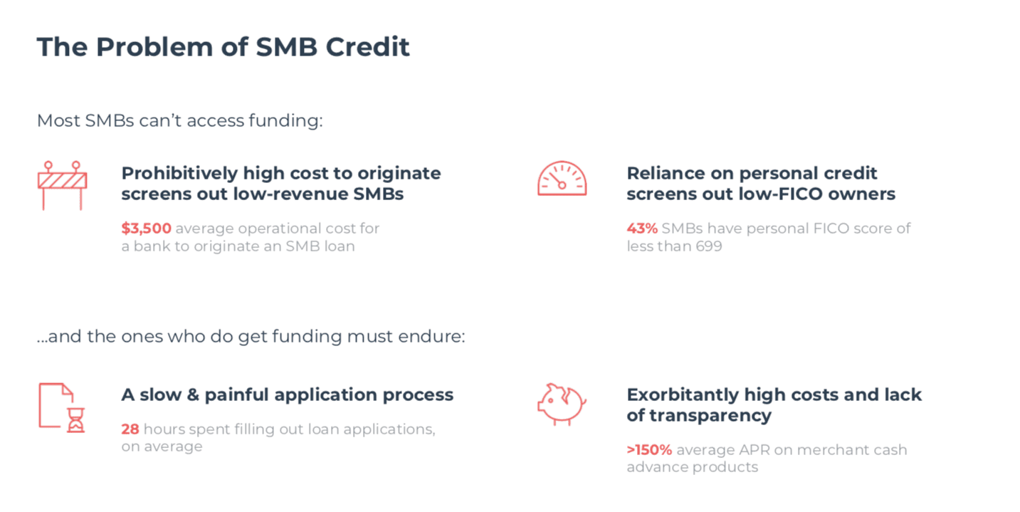 “This is a major gap in a market that is three times the size of B2C,” he told Webster. “These are blunt tools, and they are expensive because someone has to manually gather that information, and it takes time” — and some of the forms submitted can be erroneous ones. As a result, many small businesses find their credit needs unmet, namely in the form of being able to finance their payments.
