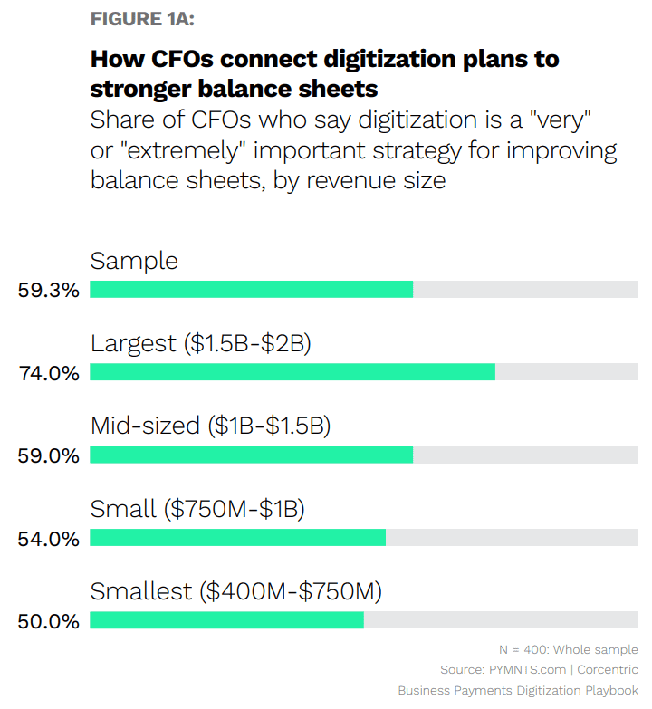 Middle-market CFOs embarking on the digitization journey may find more benefits than they had in mind when they were prompted to begin, as well as unanticipated gains, according to a recent PYMTS survey.
