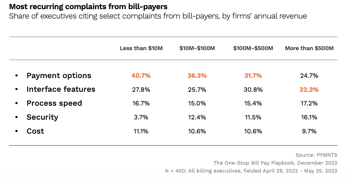 Findings in “The One-Stop Bill Pay Playbook” show that a majority (60%) of bill payer complaints are tied to a lack of payment options and shortcomings in the payment process.