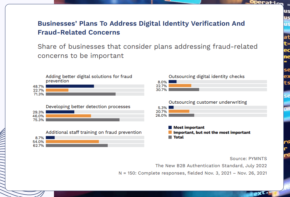 - 71% of businesses acknowledge the need for additional digital fraud solutions, and 49% cite the issue as most important to their fraud-related concerns. Organizations still relying on manual and reactive anti-fraud tools experience slower growth than those using proactive and automated solutions. Fraud-related growth limitations can include both direct theft by hackers and other bad actors and revenue loss from limiting the acceptance of new customers.