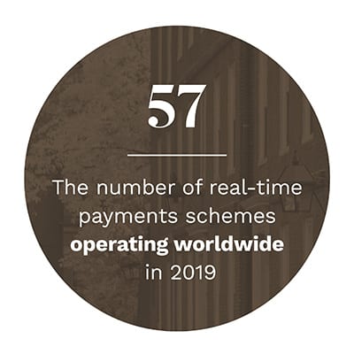 For precisely this reason, the number of real-time payments systems have been rapidly proliferating around the globe, with 57 real-time payment rails operating in more than 72 countries in 2019, and even more under construction.