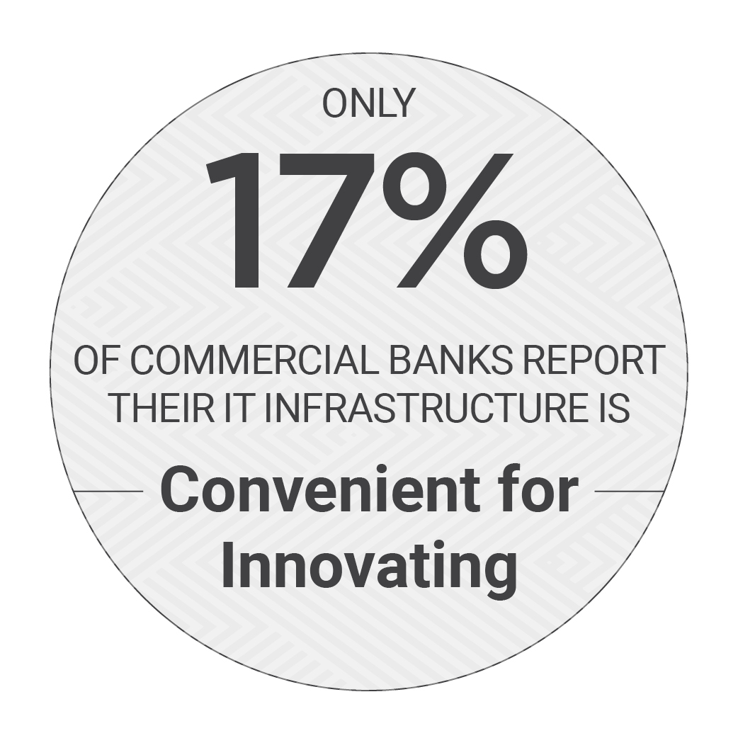 In fact, IT infrastructure was cited as the top challenge for both community and commercial banks, and a major challenge for top performers as well, while CUs pointed to their budget as the biggest hurdle to clear. FIs also cited organization and culture as their top concerns.