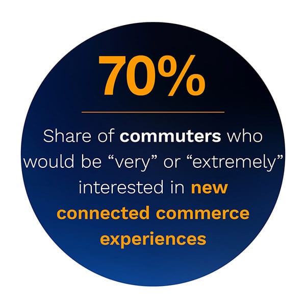 Commuters are also more eager to try their hands at new types of connected commerce experiences than non-commuters. Seven in 10 commuters say they would be either “very” or “extremely” interested in trying new connected commerce experiences, in fact, compared to four in 10 non-commuters. It is therefore cl