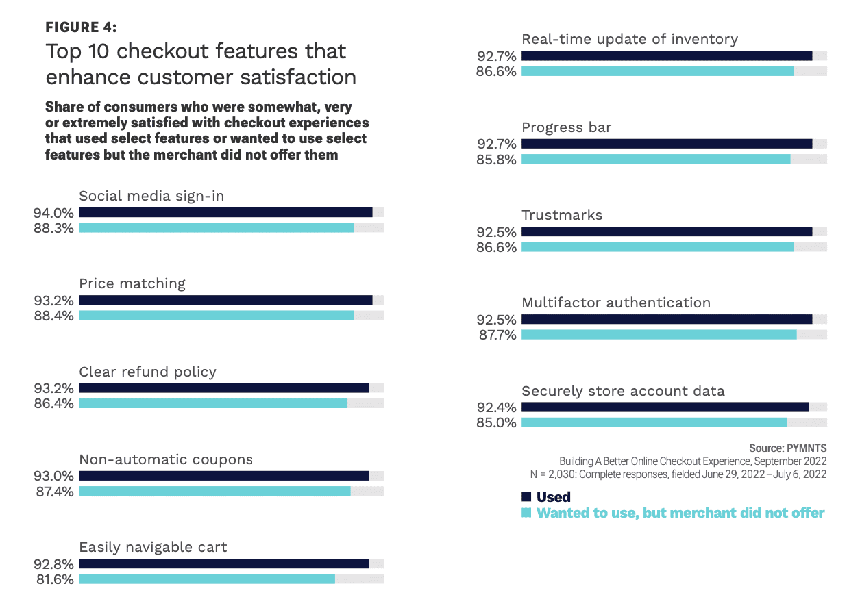 And yet: Many merchants do not offer these checkout features, which bumps up directly against what customers want to have in hand as they navigate the last few moments headed toward clicking the buy button and closing the sale.