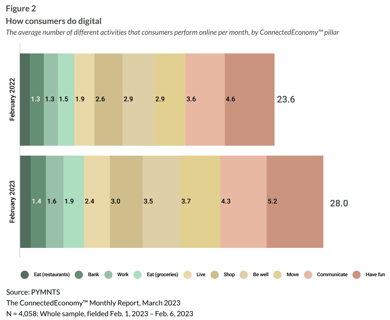 Research from the latest edition of PYMNTS’ ConnectedEconomy™ series, “ConnectedEconomy™ Monthly Report: The Evolving Digital Daily Edition,” which draws from a February survey of more than 4,000 U.S. consumers, finds that digital engagement with grocers has increased 27% in the last year. This growth was significantly higher than the 11% year-over-year rise seen in engagement with restaurants’ eCommerce channels.